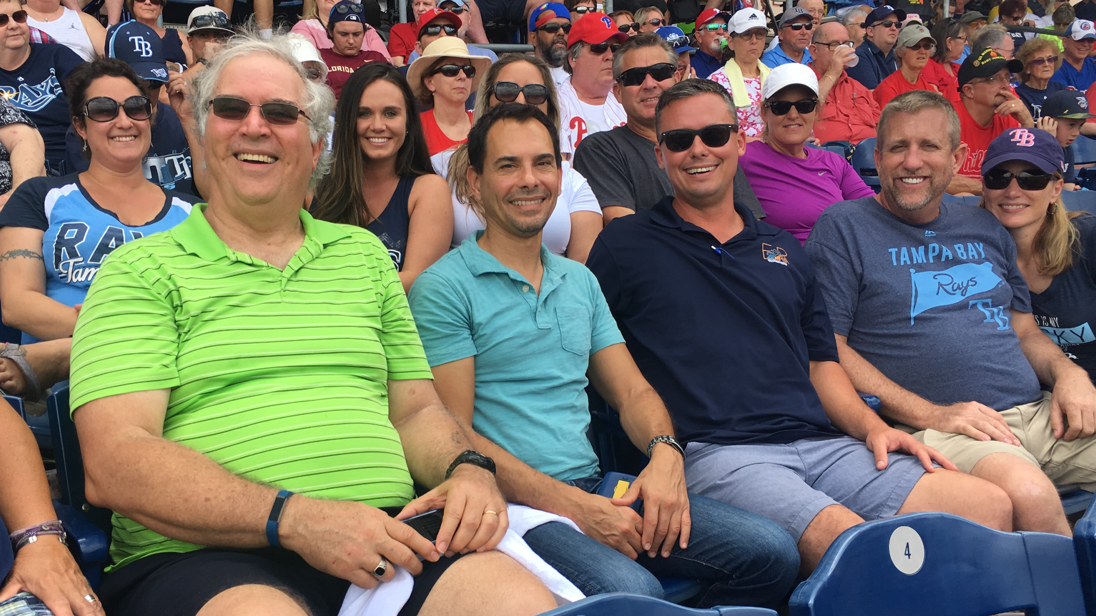 CEO David Neuhaus and ICU employees, Ansley, Britney, Megan, Sara, Mike, Greg and Jose attend the Rays vs. Phillies game on March 31.